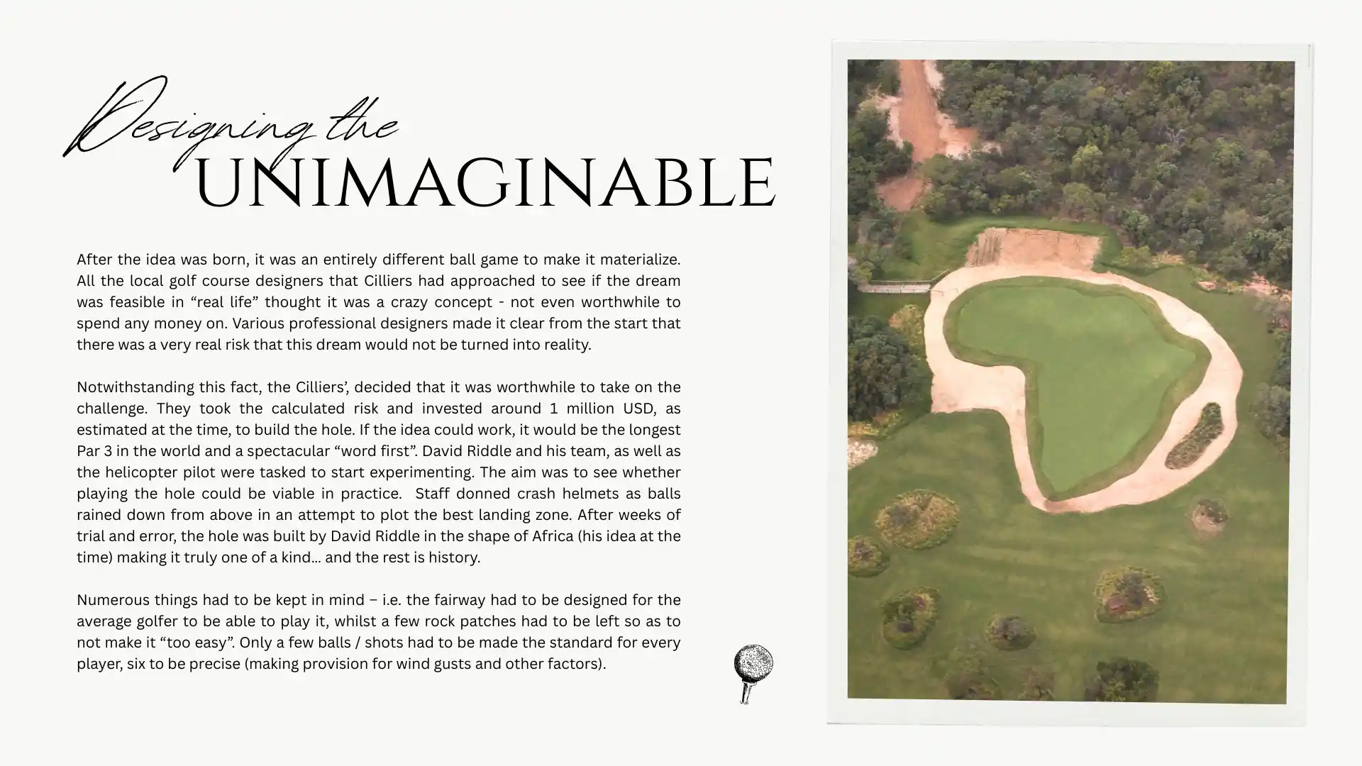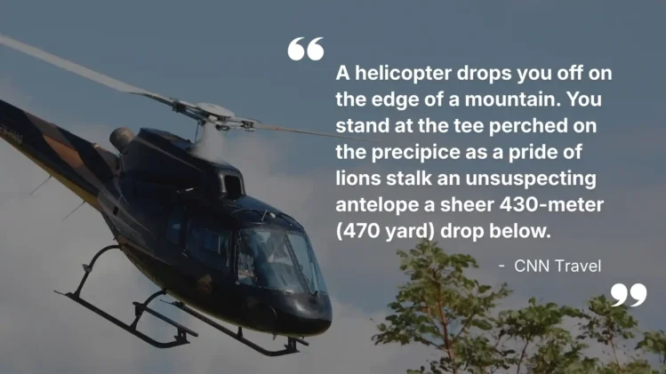 Accessible only by helicopter, the hole is situated on top of Hanglip Mountain, with a 361-metre shot to the green, situated 400 breathtaking metres below the tee.