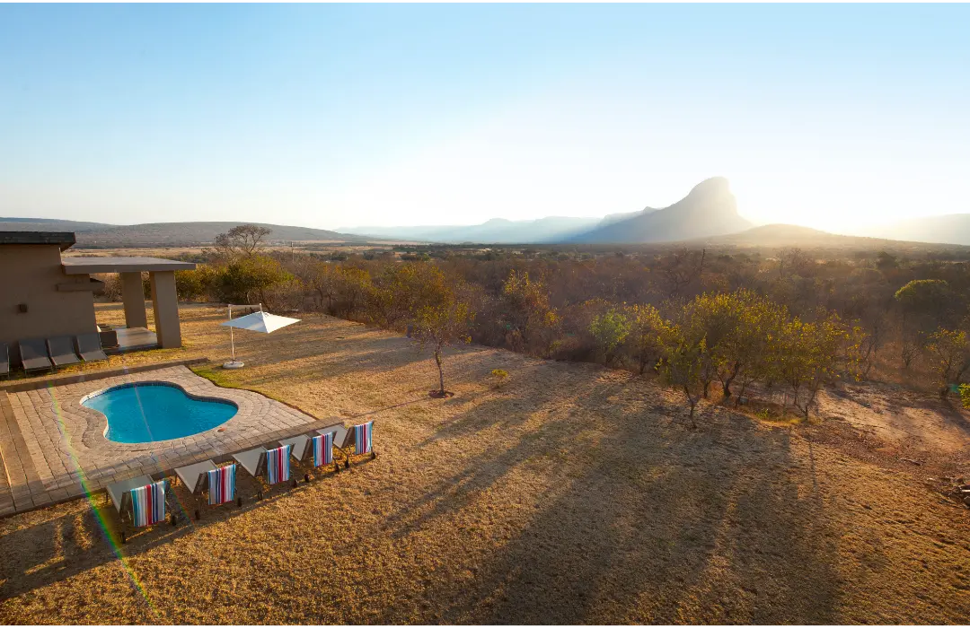 This unique resort is situated adjacent to the 22,000ha Entabeni Safari Conservancy within the World Heritage “Waterberg Biosphere” in the malaria-free region of the Limpopo Province.